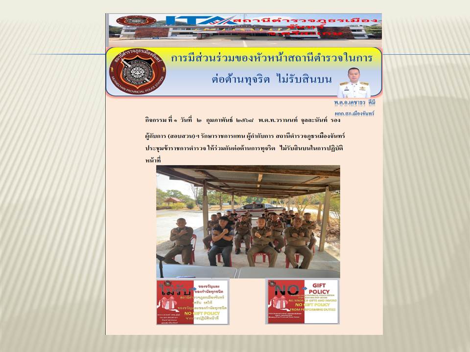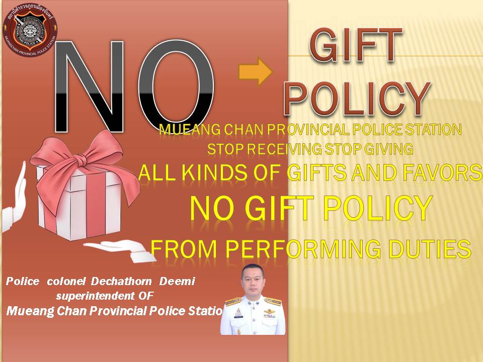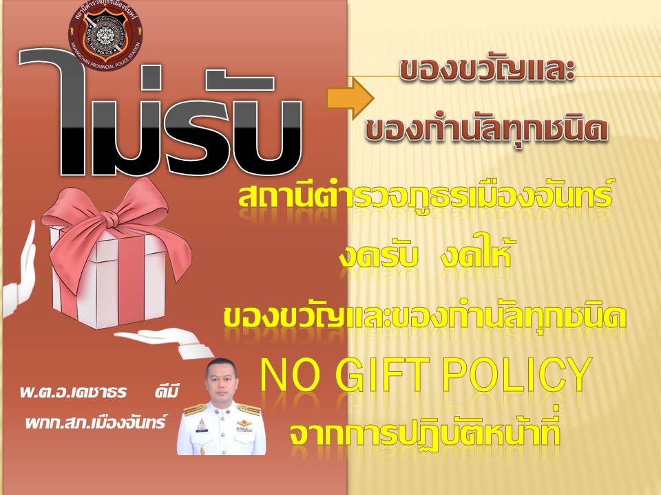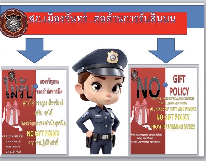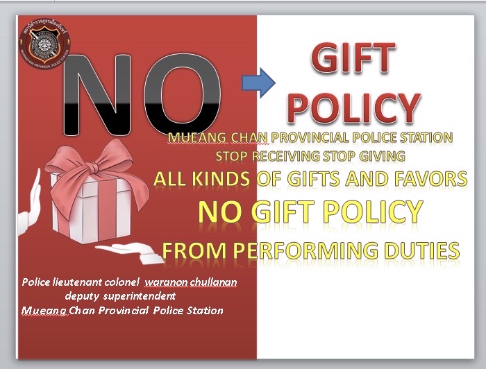 - ประกาศสำนักงานยุทธศาสตร์ตำรวจเรื่องเจตนารมณ์ที่จะไม่รับของขวัญหรือของกำนัลทุกชนิดจากการปฏิบัติหน้าที่