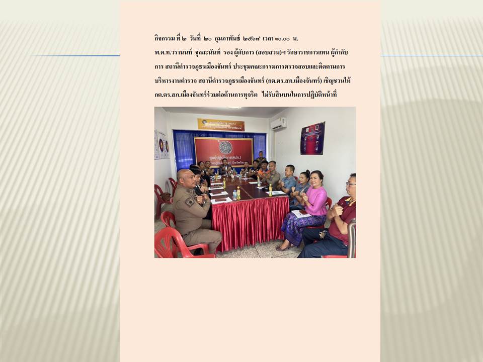 ํ ํ ํ ํ ํ ํ ํสภ.เมืองจันทร์ ประชุมและคัดเลือก ประธานคณะกรรมการตรวจสอบและติดตามการบริหารงานตำรวจ สถาน