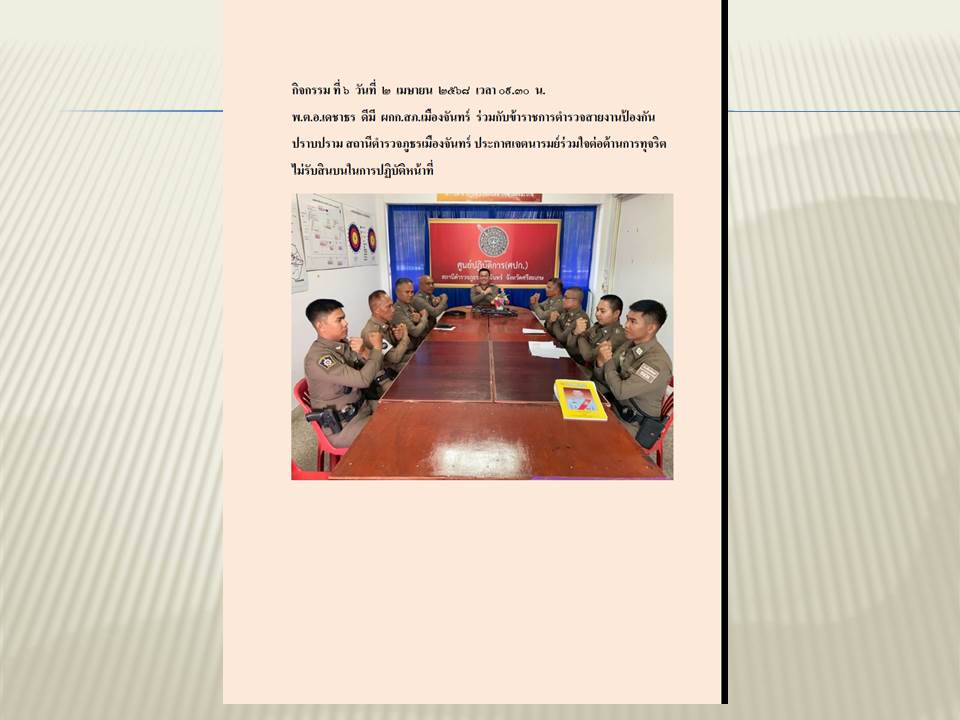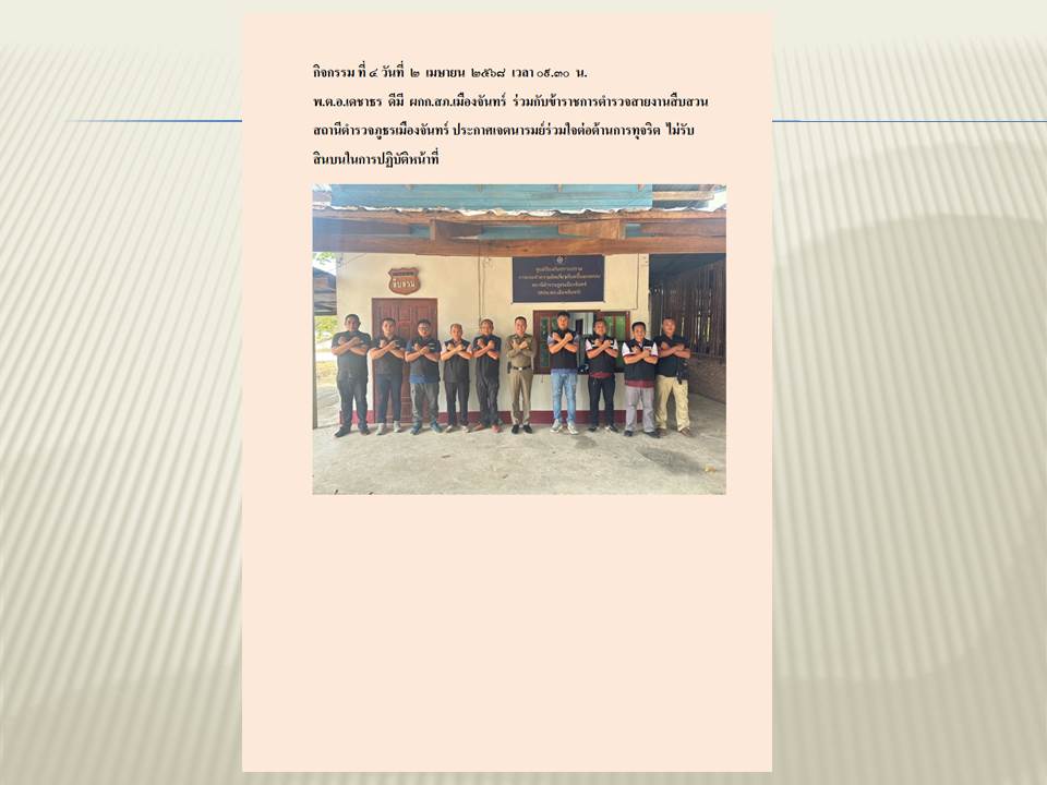 สถานีตำรวจภูธรเมืองจันทร์ ต่อต้านการรับสินบน จากการปฏิบัติหน้าที่